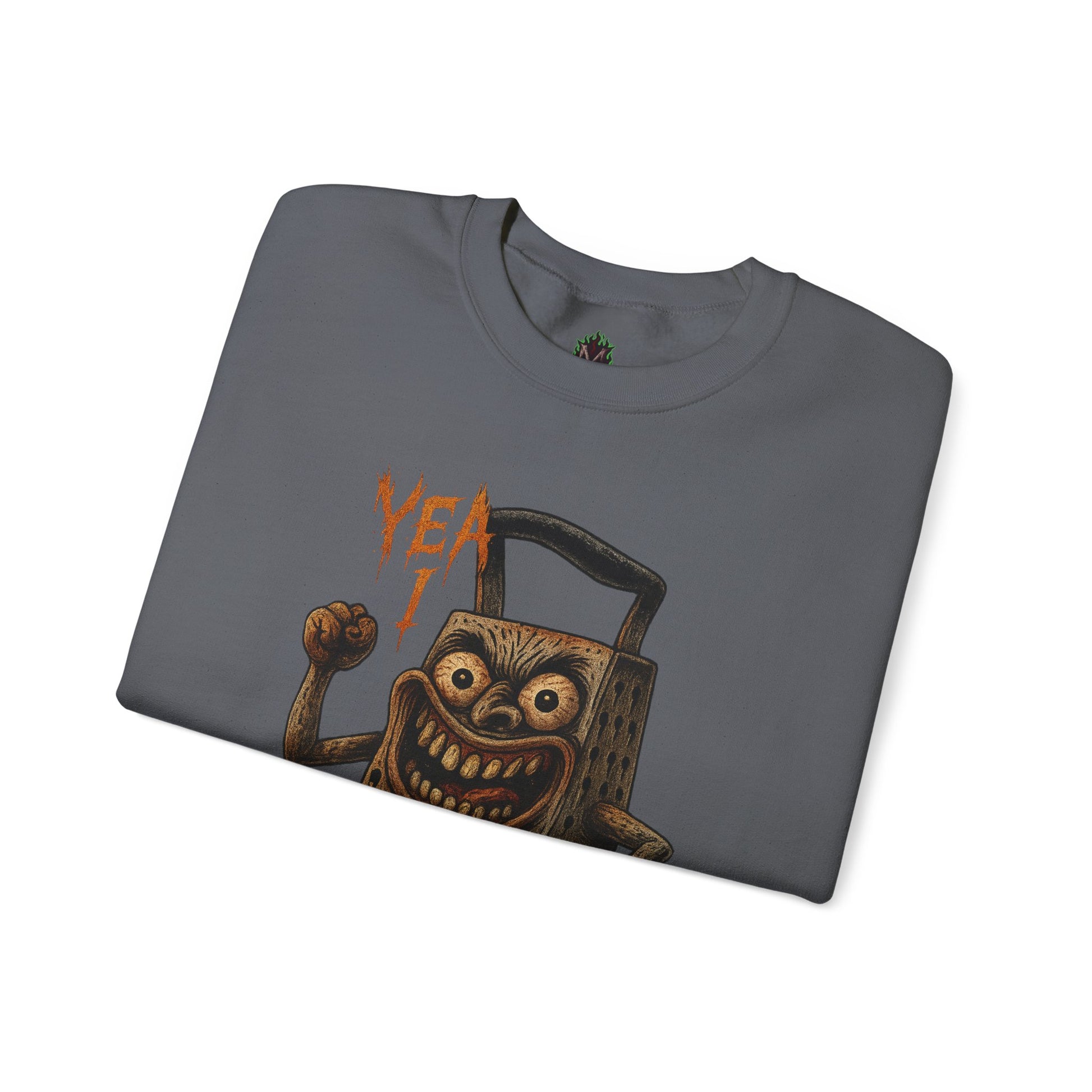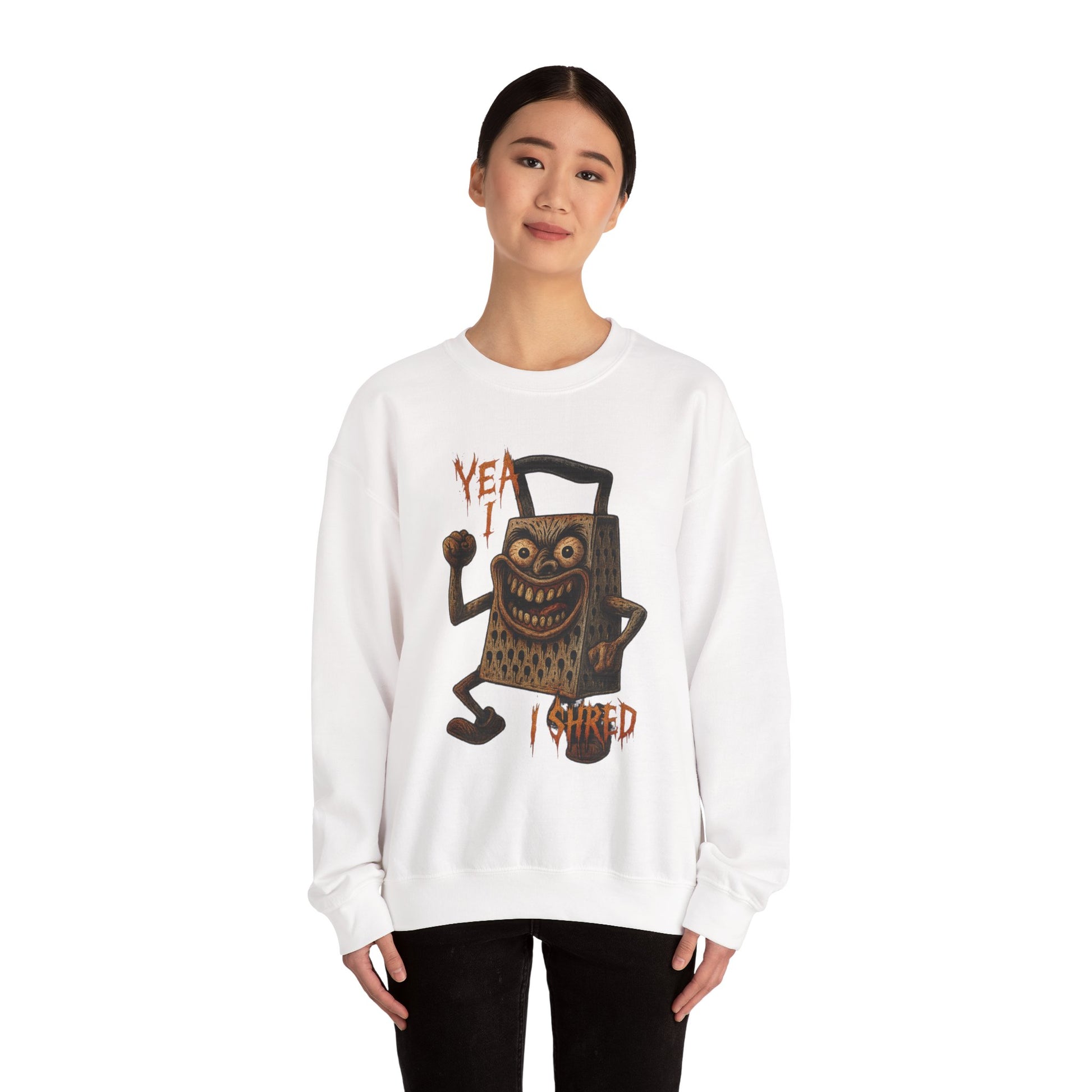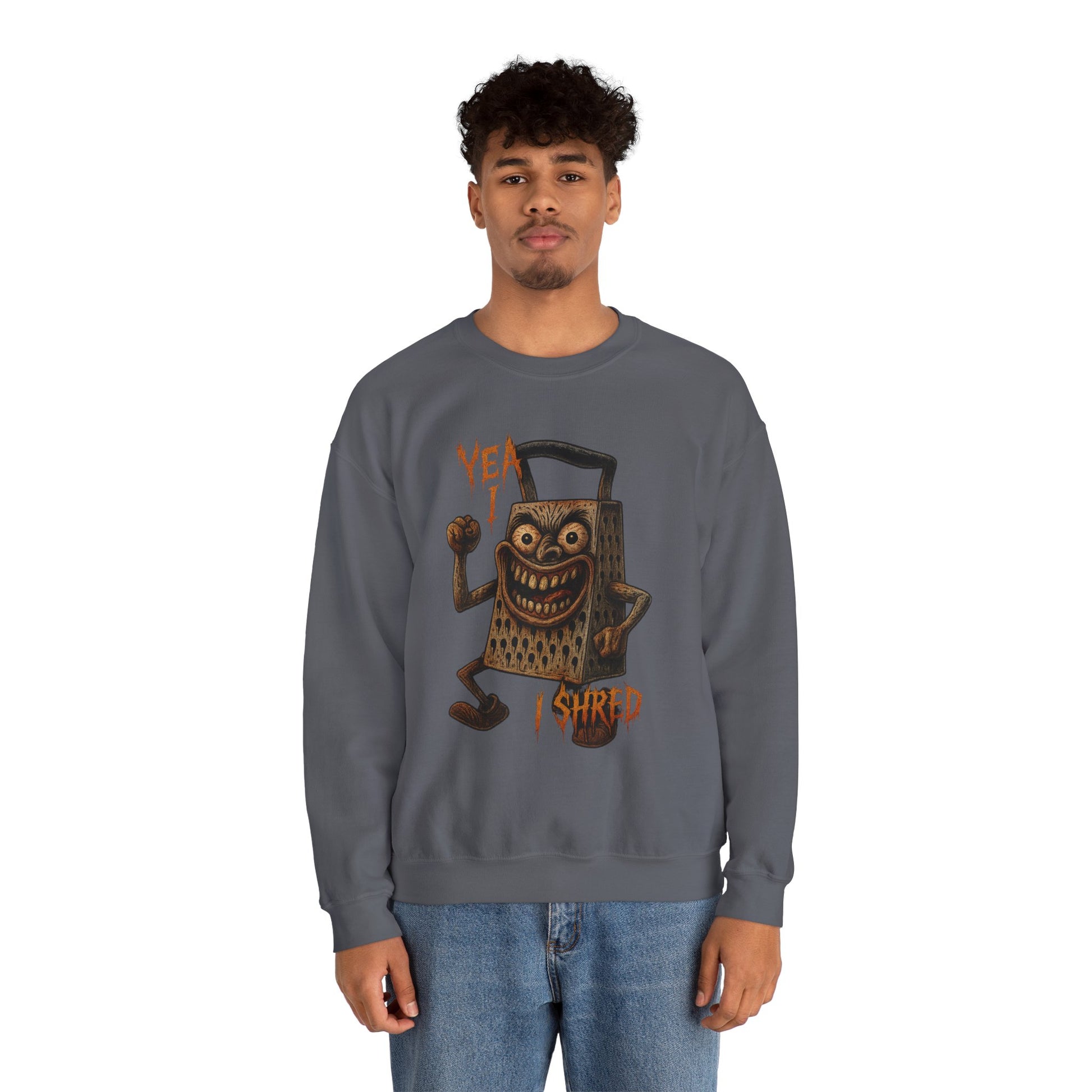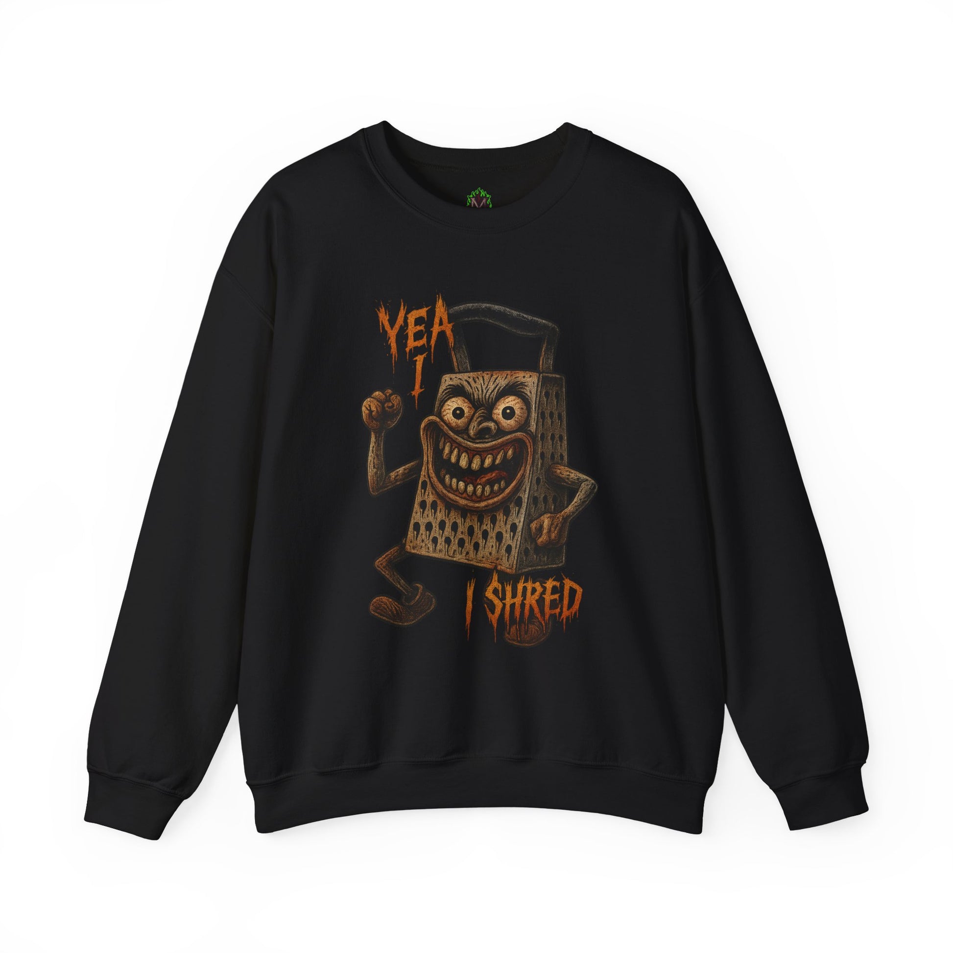 The “Yea I Shred” crewneck features a deranged, flexing shredder ready to slice more than just cheddar. For fans of food puns, hardcore energy, and unapologetic kitchen chaos.