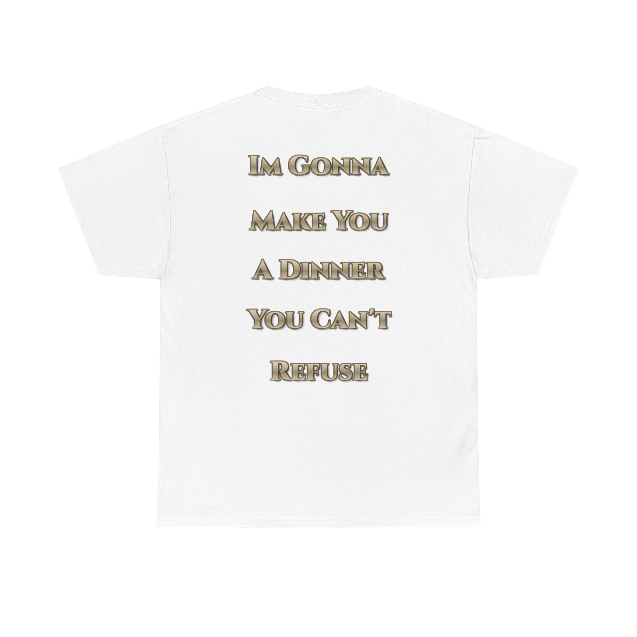 And don’t miss the back: “I’m Gonna Make You A Dinner You Can’t Refuse” — because this grill means business.