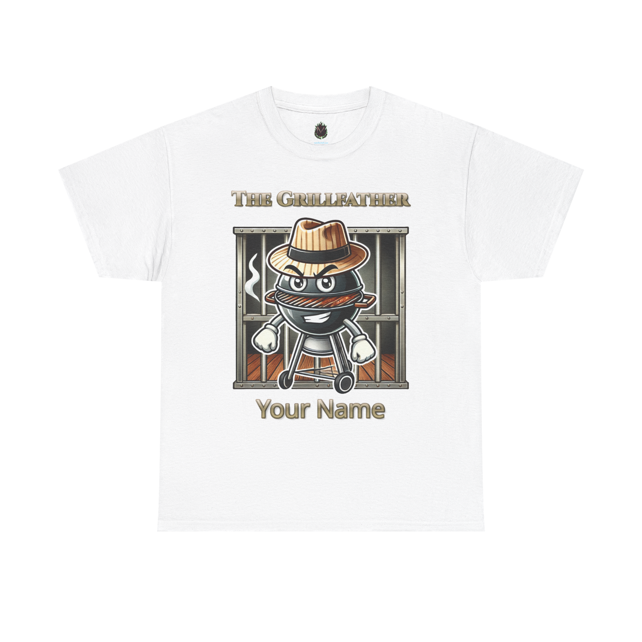Step aside, Don Corleone — there's a new boss at the barbecue. This hilarious tee features a cartoon grill in full mobster mode, complete with fedora and mustache, behind bars of smoke and fire. With “The Grillfather” up top and the option to personalize it with Your Name, it’s a must-have for any backyard boss.