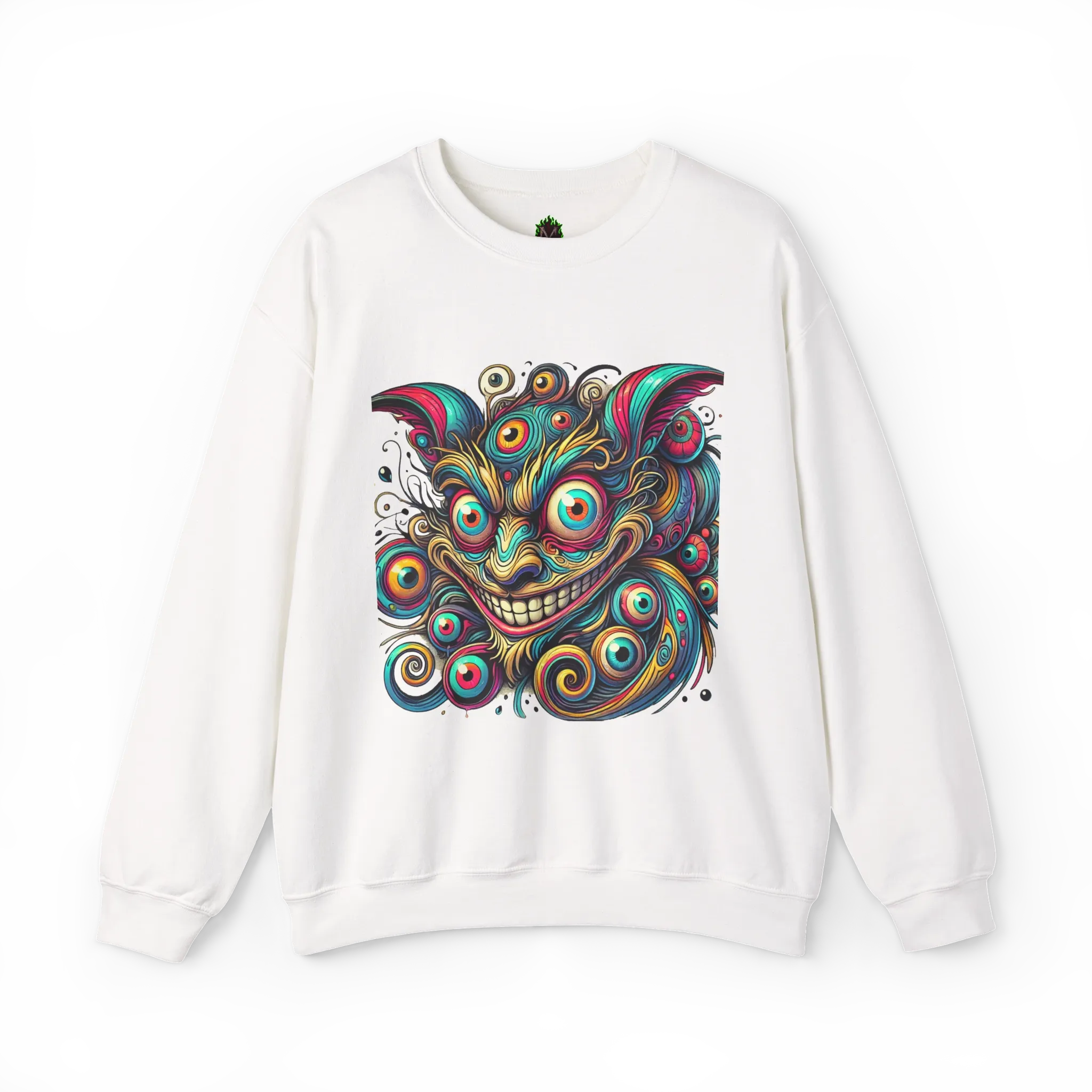 The Demon Swirl Eyes Crewneck is a head-turning fusion of psychedelic art and chaotic mischief.