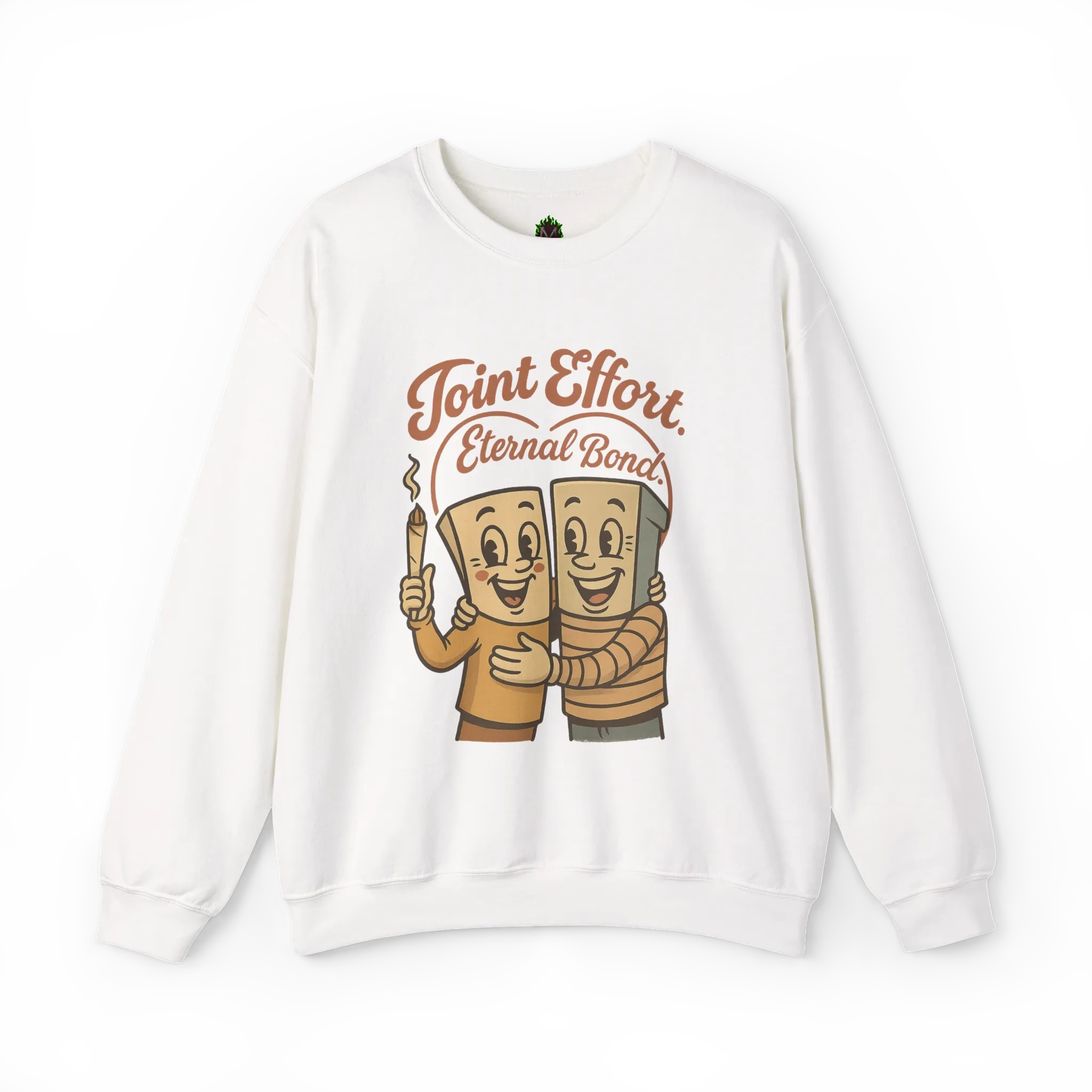 This Joint Effort – Eternal Bond Crewneck features two happy joints sharing the ultimate bro-hug. It’s retro, it’s heartwarming, and it’s lit—literally.