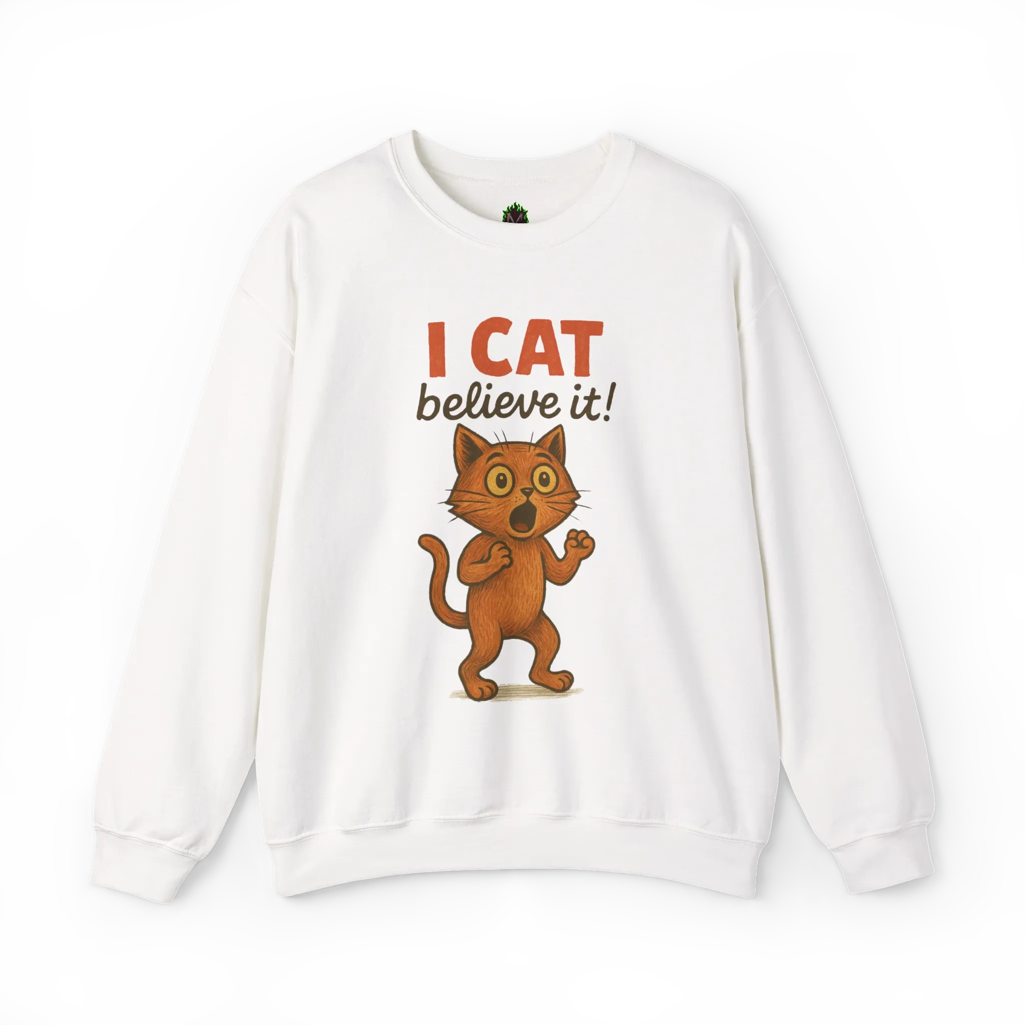 I Cat Believe It! is pure cartoon disbelief in wearable form.