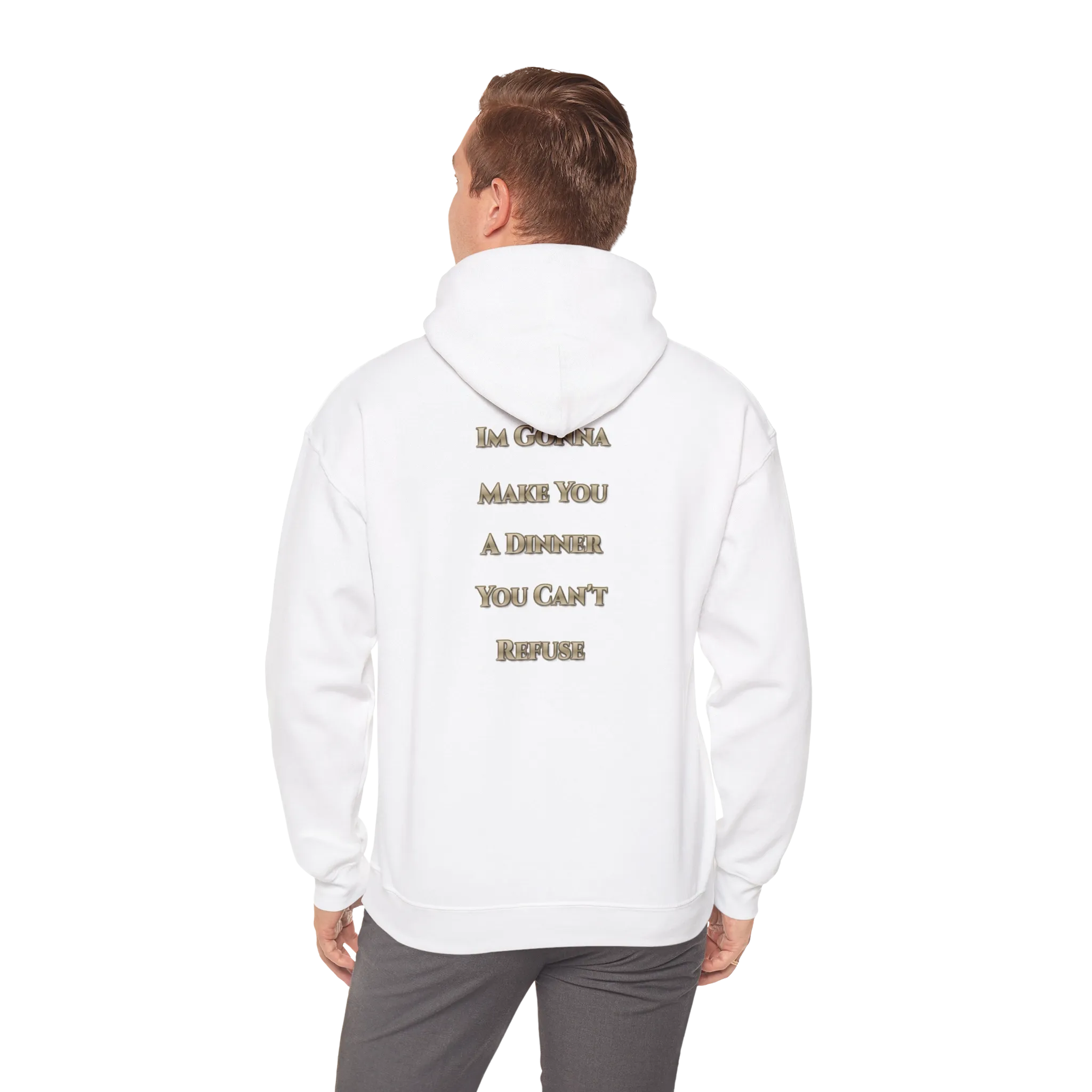 The Grillfather doesn’t ask. He serves. This hoodie features a mafia-style grill don with a custom nameplate up front and a golden threat of flavor on the back: “I'm Gonna Make You A Dinner You Can't Refuse.”