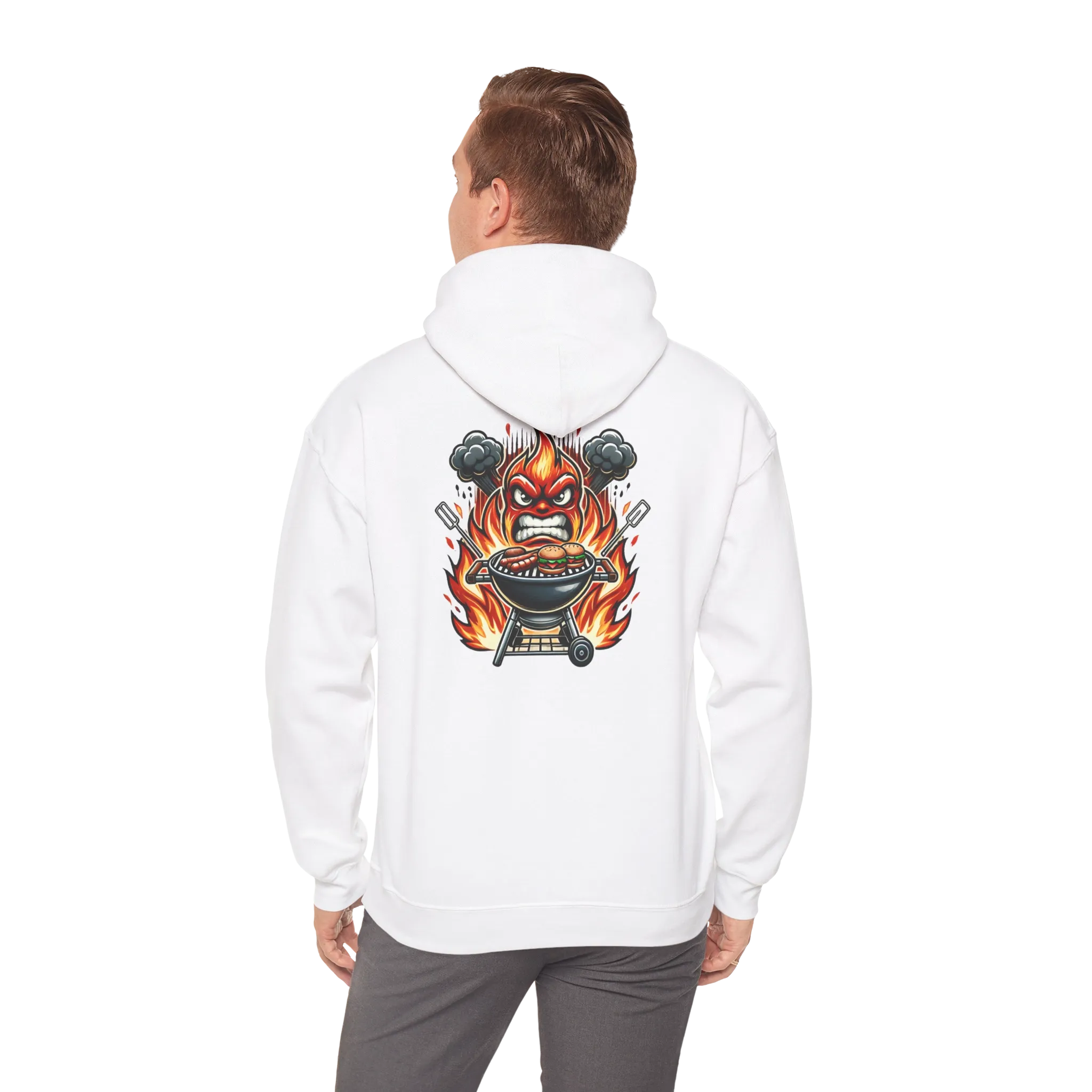 Grillmaster isn’t a title—it’s a way of life. This dual-sided hoodie makes it loud and clear. The front showcases your status with a bold flame badge, while the back explodes with a fiery barbecue beast engulfed in smoke, skewers, and sizzling carnage.