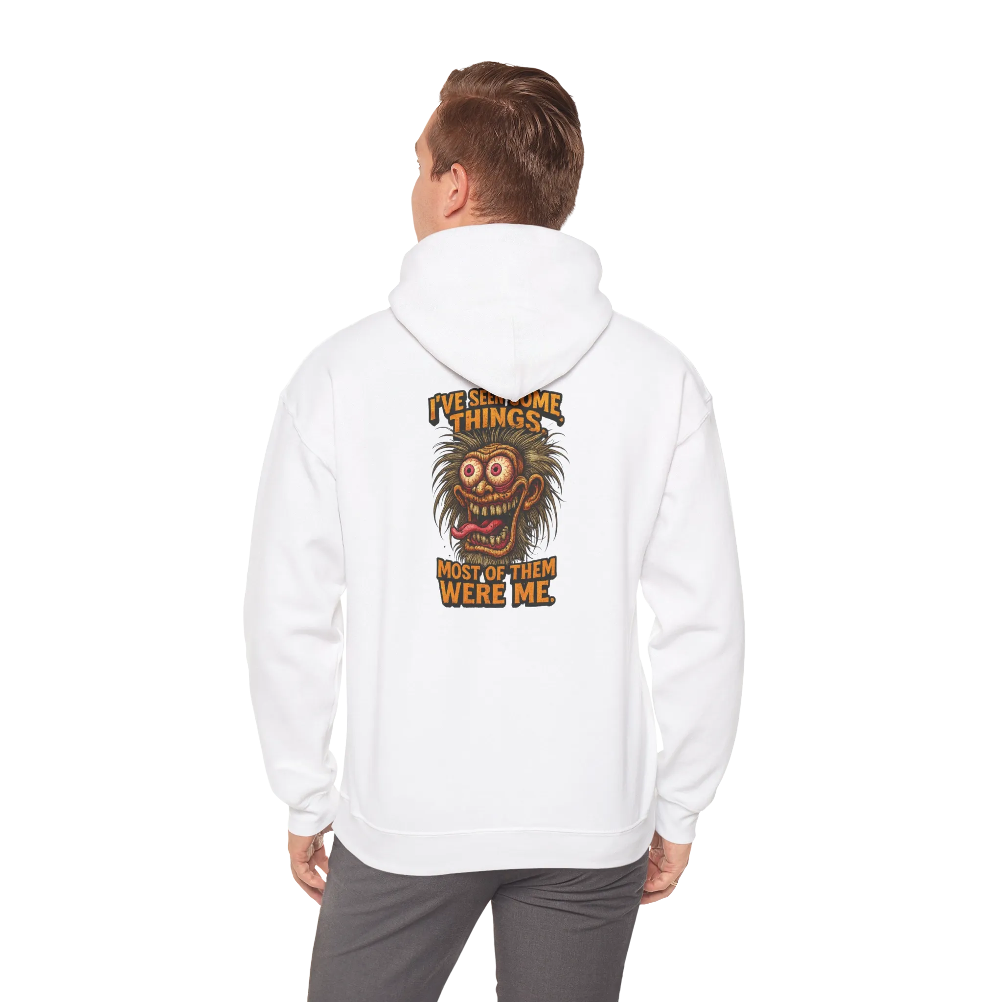 Featuring a crazed gremlin of a face with wild hair, bugged eyes, and an expression that screams ?I did what I had to do,? this design is for those who?ve seen some serious sh*t? and starred in most of it.