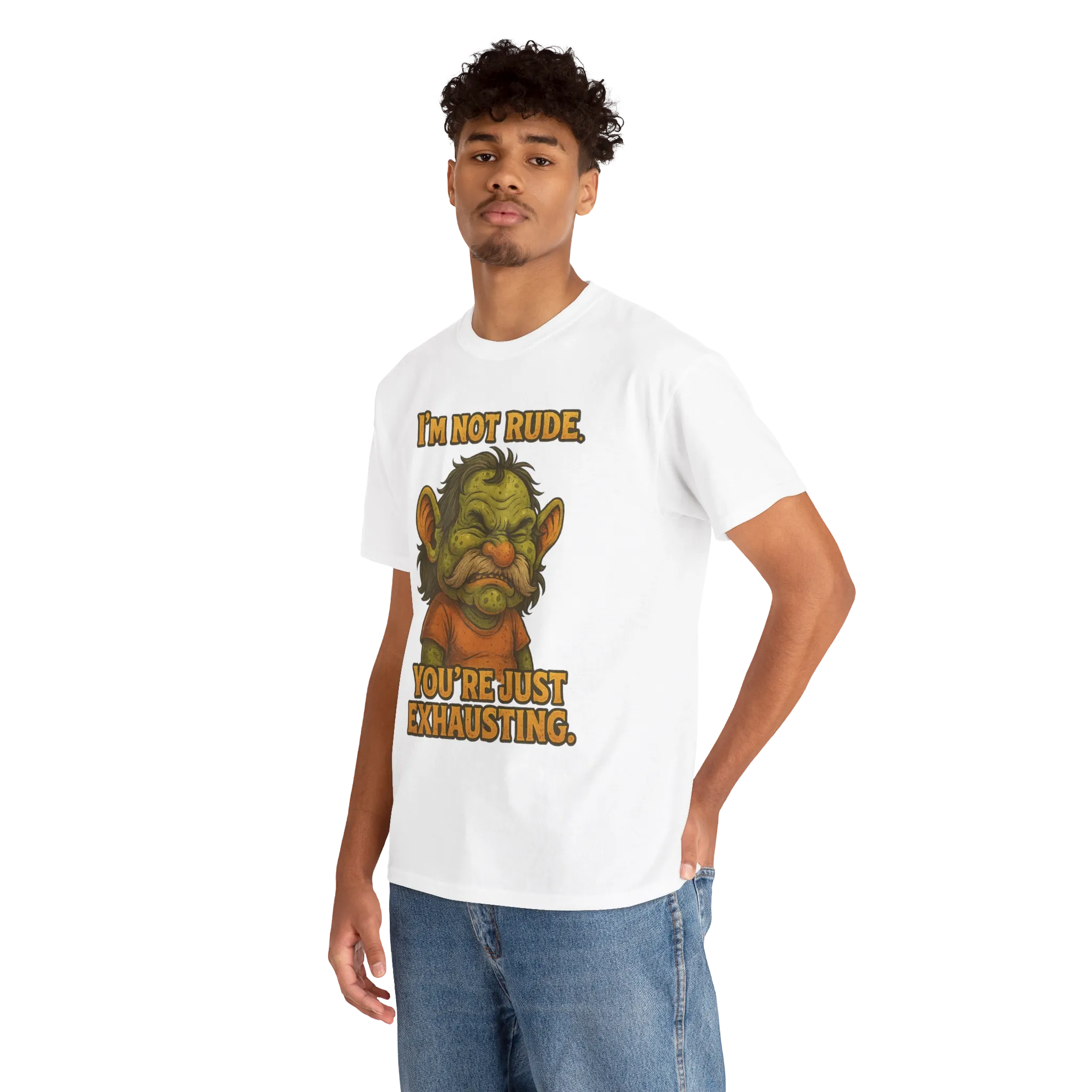 This graphic T-shirt features a permanently unimpressed character paired with the brutally honest phrase “I’m Not Rude. You’re Just Exhausting.”
