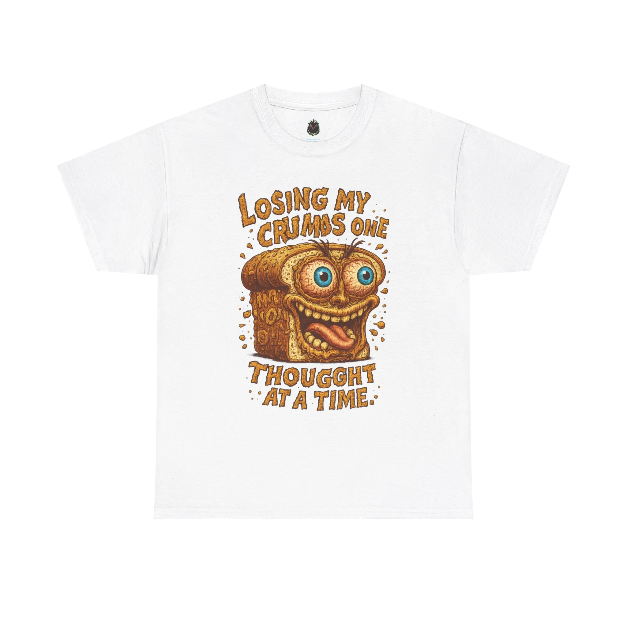 Our “Losing My Crumbs One Thought at a Time” t-shirt features an insane-looking cartoon bread loaf that’s clearly one bite away from losing it. Equal parts weird, hilarious, and weirdly relatable, it’s the perfect shirt for those unhinged days where nothing makes sense—but you still manage to laugh.