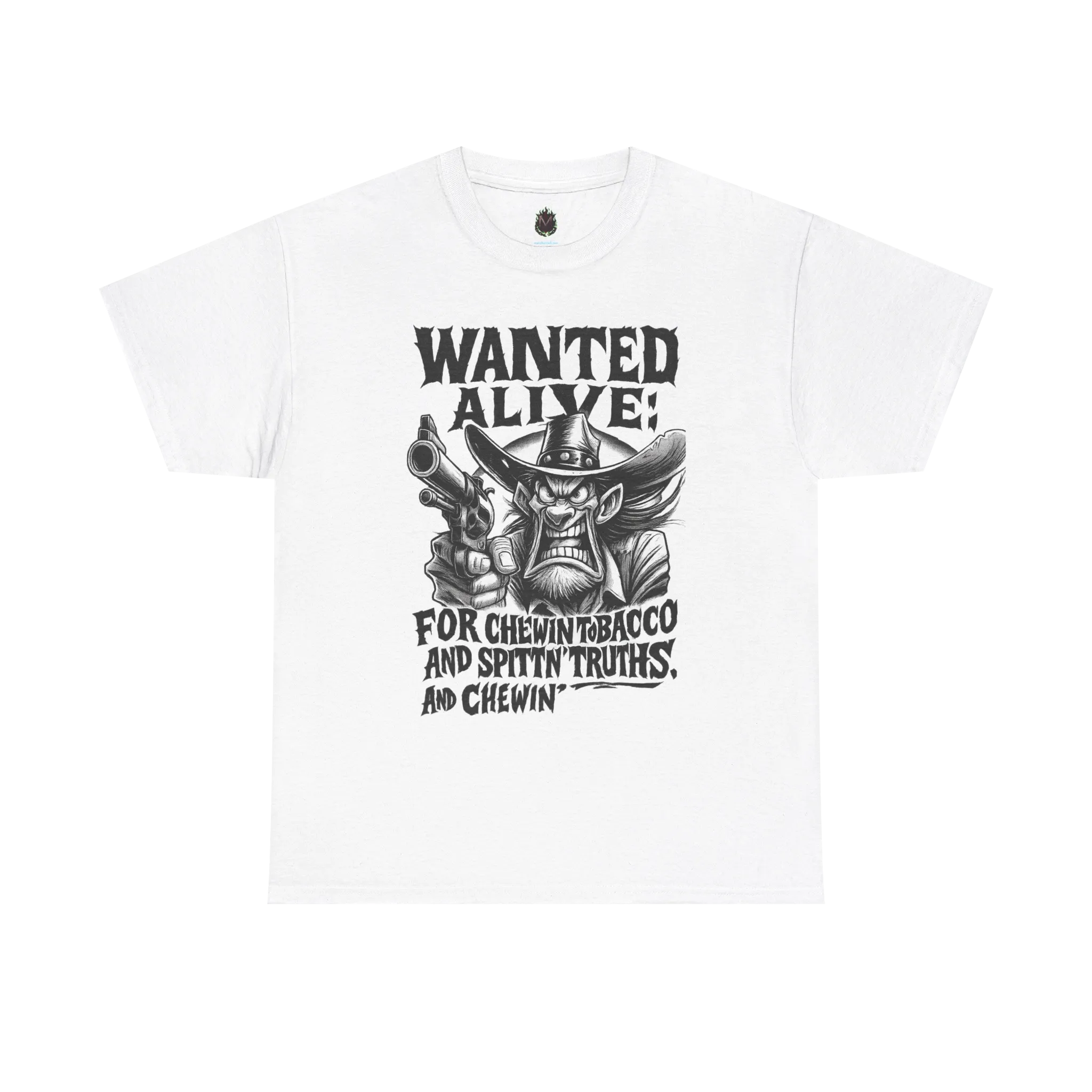 This tee brings serious outlaw vibes with a gunslinger who’s here to tell it like it is—between dips.