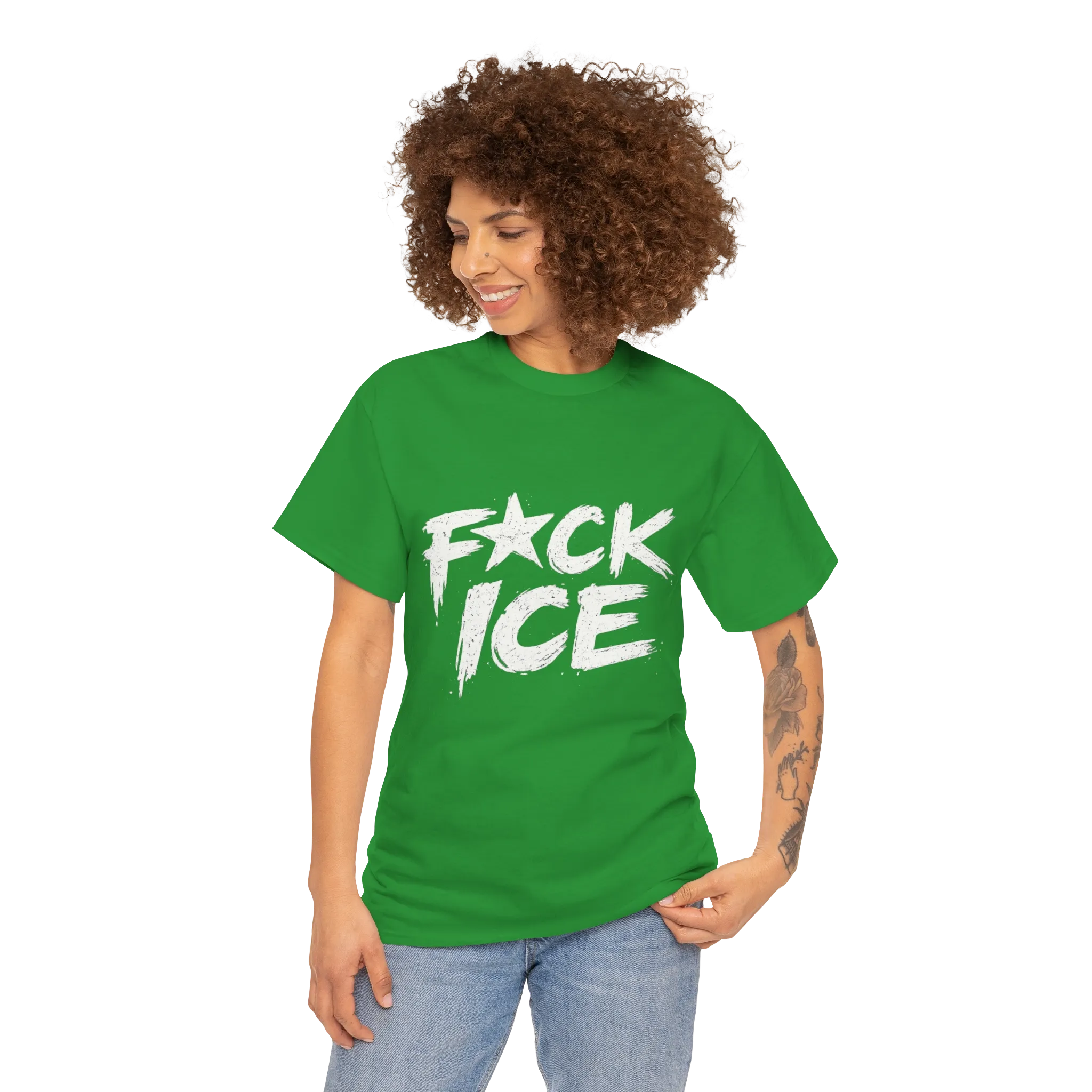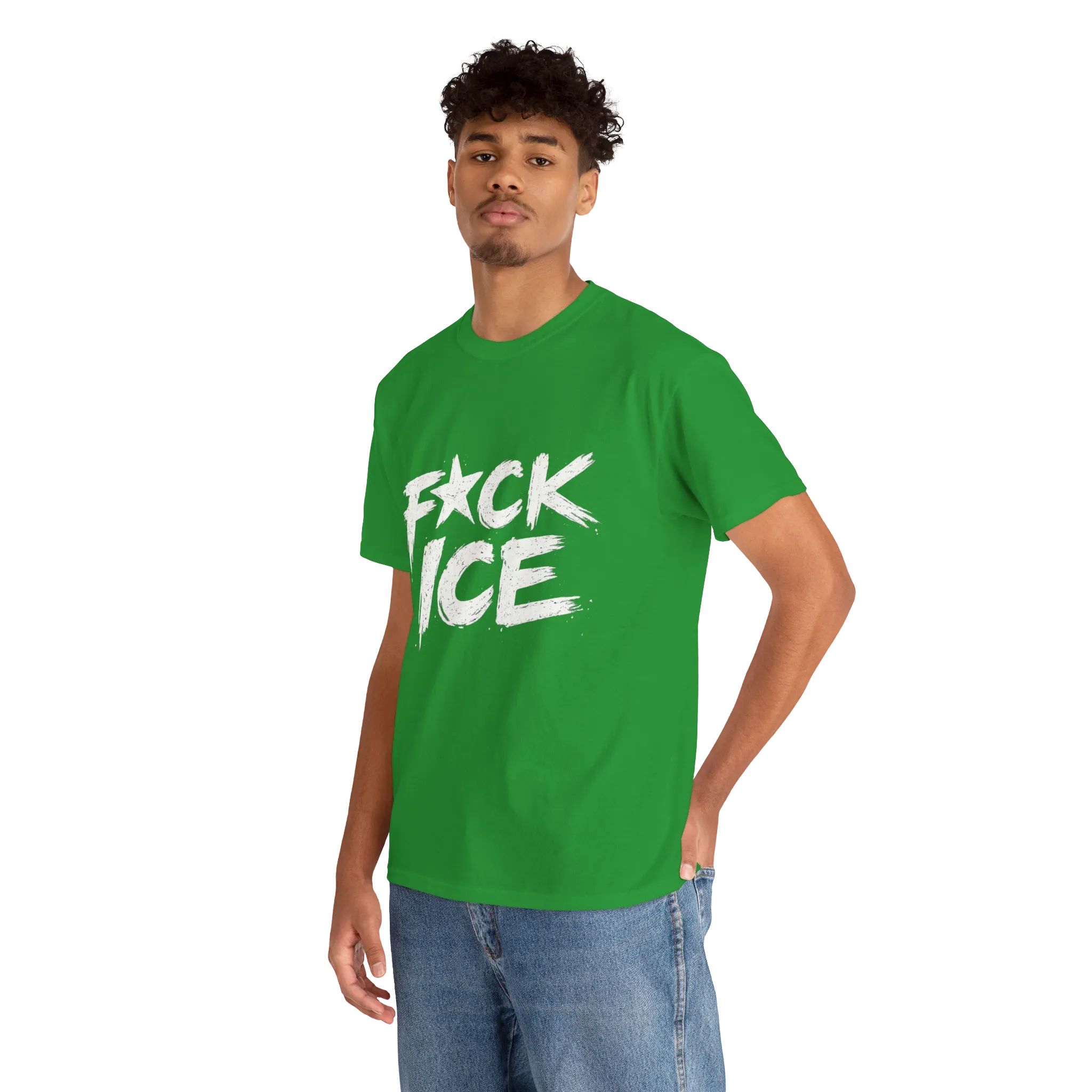 The F*CK ICE lettering uses rough, aggressive brush strokes that look ripped straight from a protest sign. Uneven edges and imperfect lines give it a raw, human feel — intentional chaos meant to be seen from a distance.