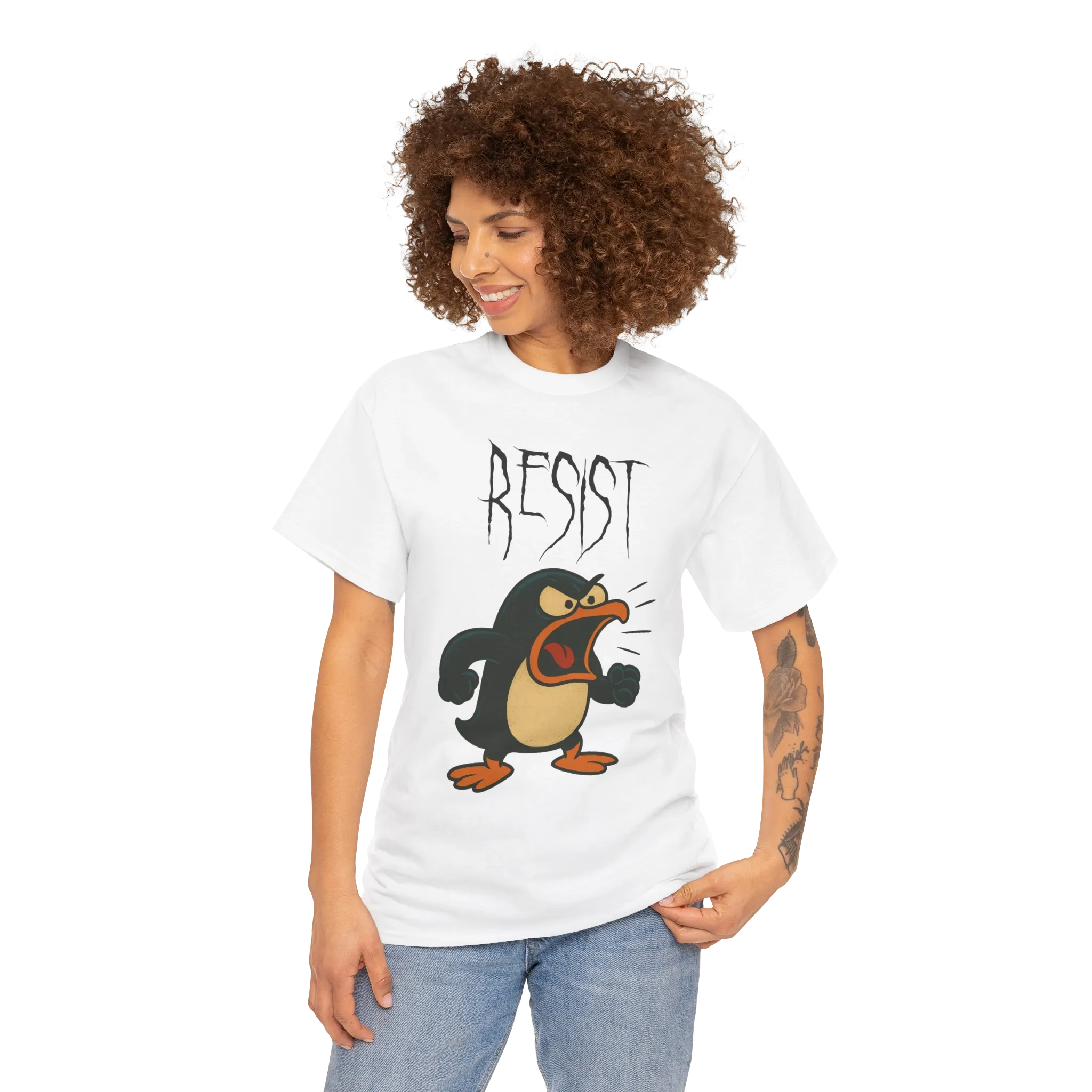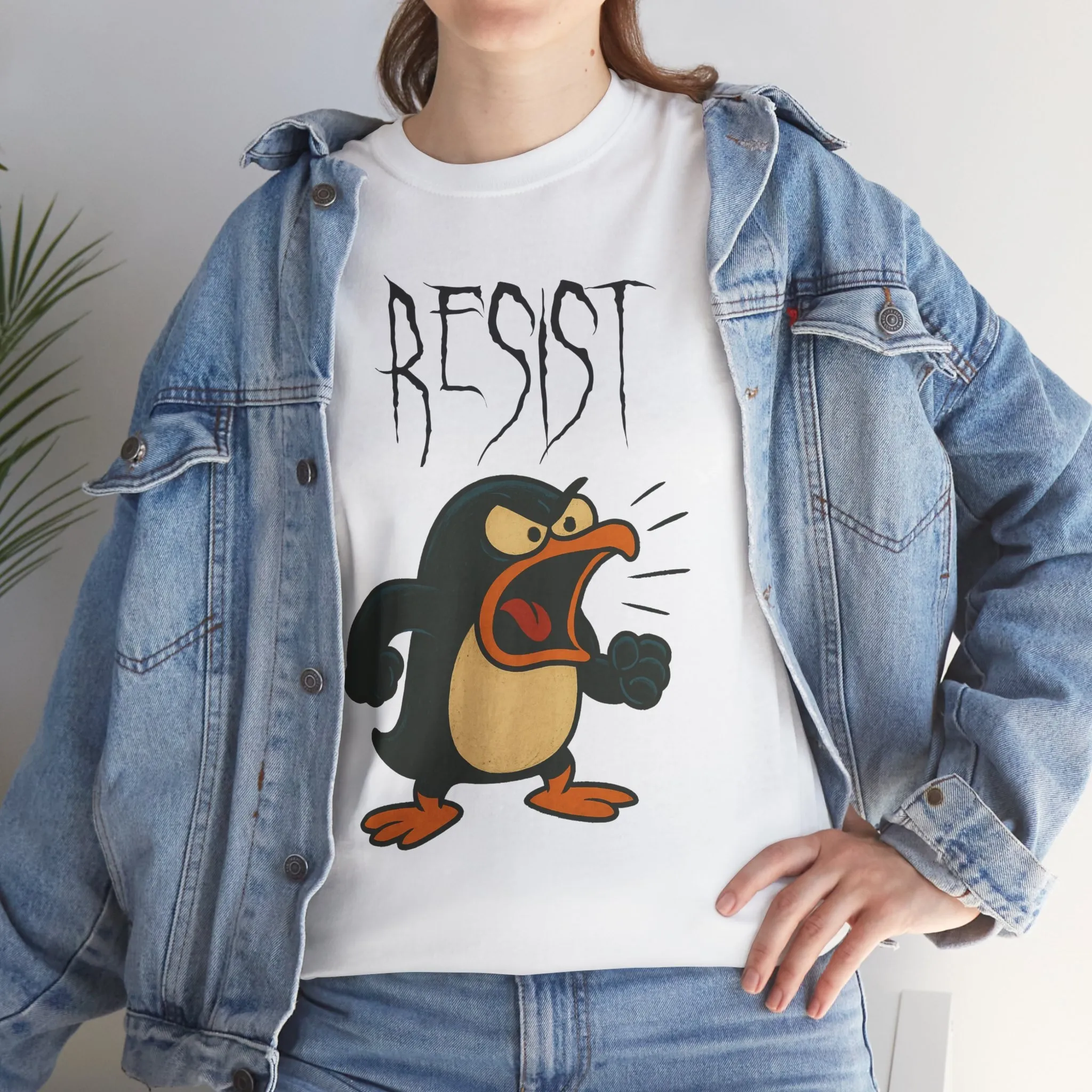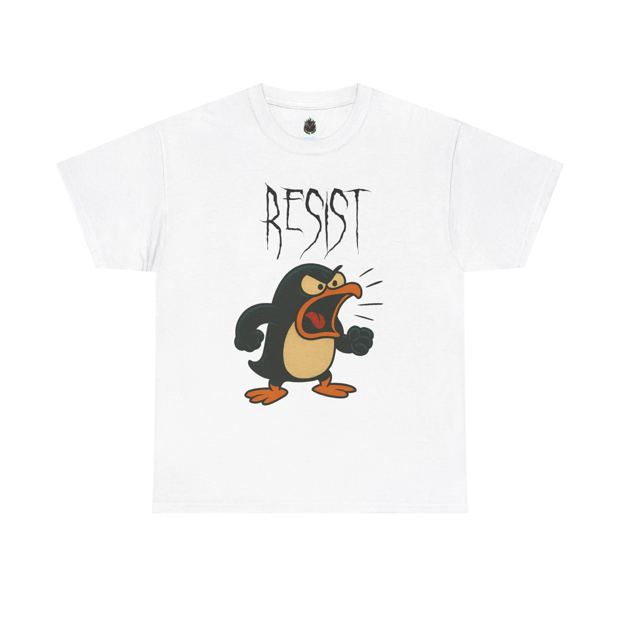 Enough is enough. This enraged cartoon penguin isn’t here for waddling and fish—he’s here to RESIST. With fists clenched and beak blazing, he’s the animal embodiment of rebellion.