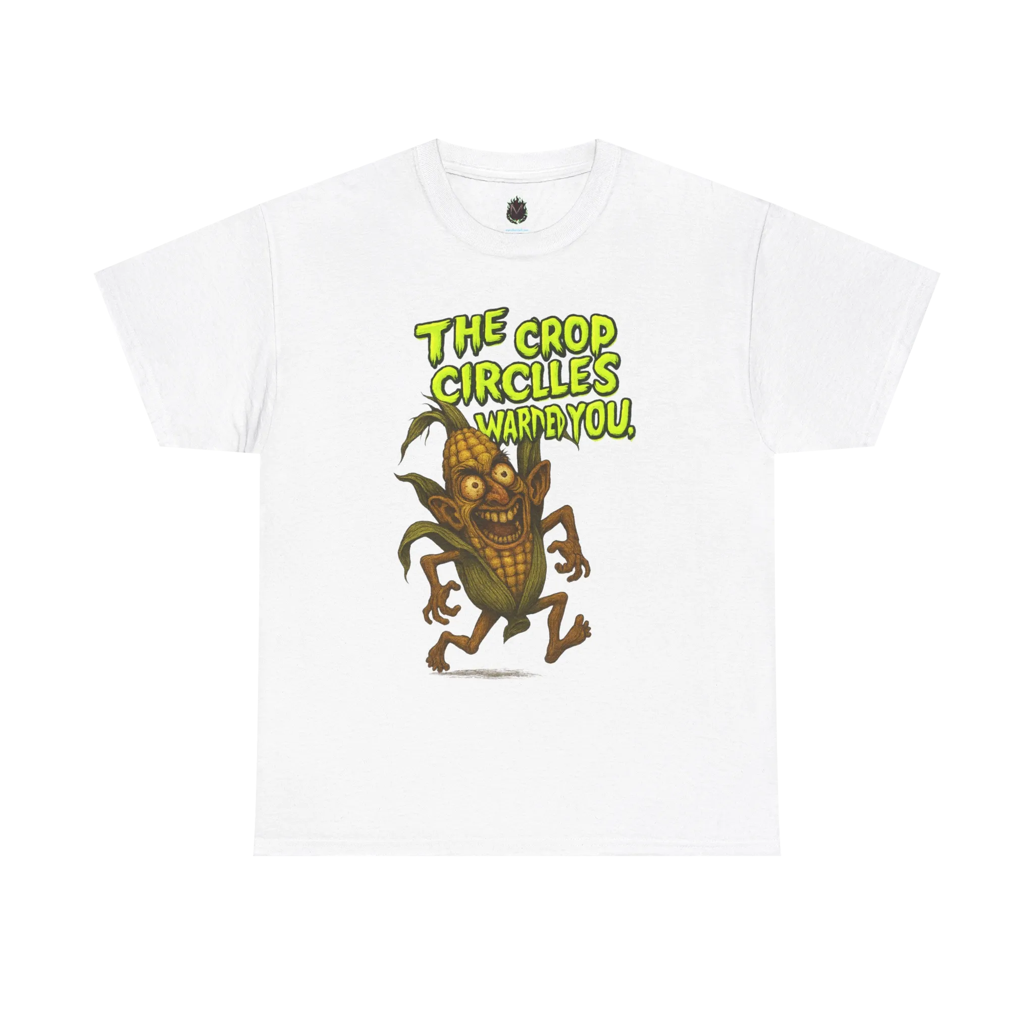 With crazed eyes, clawed hands, and full-on alien invasion energy, this graphic tee delivers dark humor with rural horror flair. “The Crop Circles Warned You” is part satire, part B-movie madness, and all weird.
