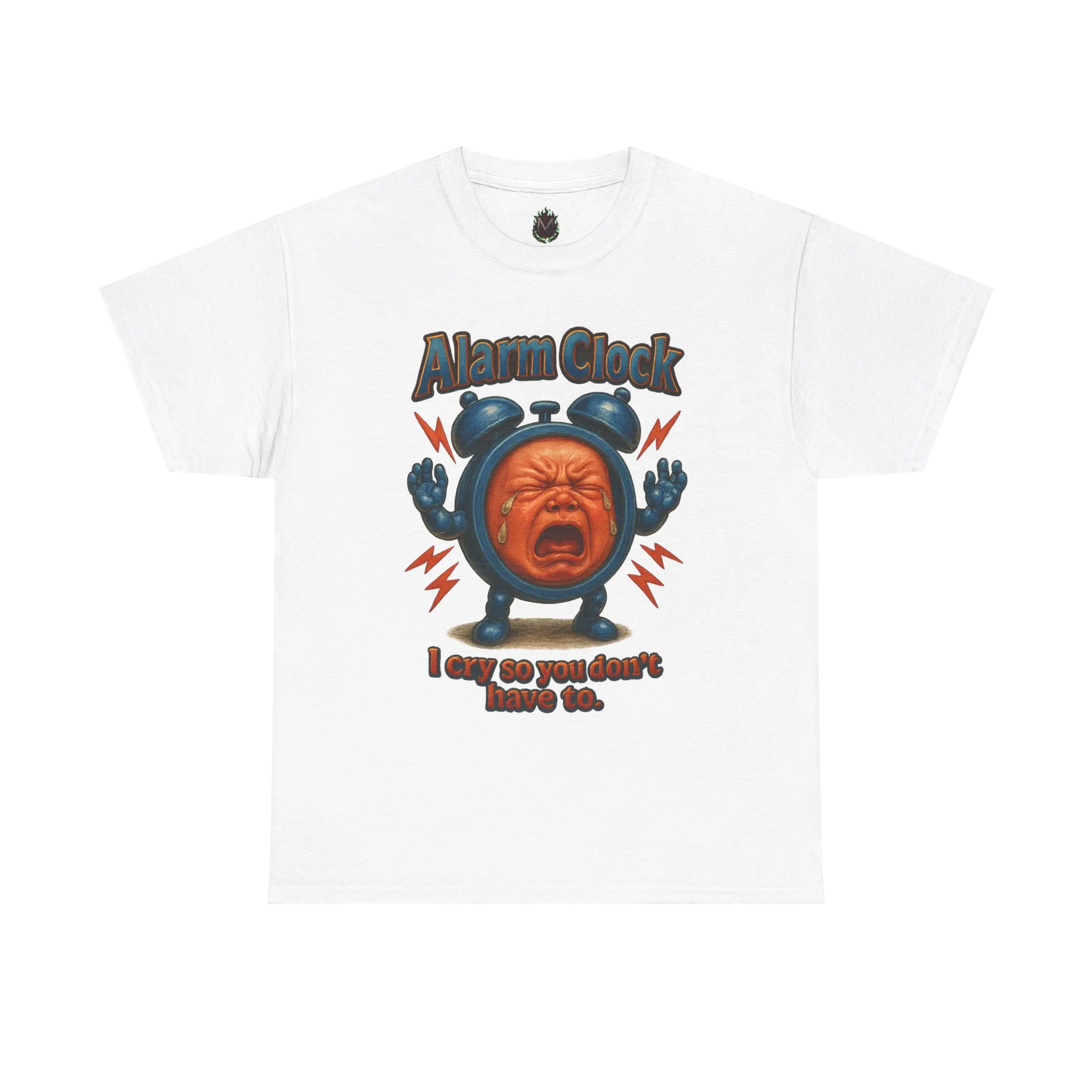 This design captures that exact energy—an unhinged alarm clock having a full emotional breakdown on your behalf.