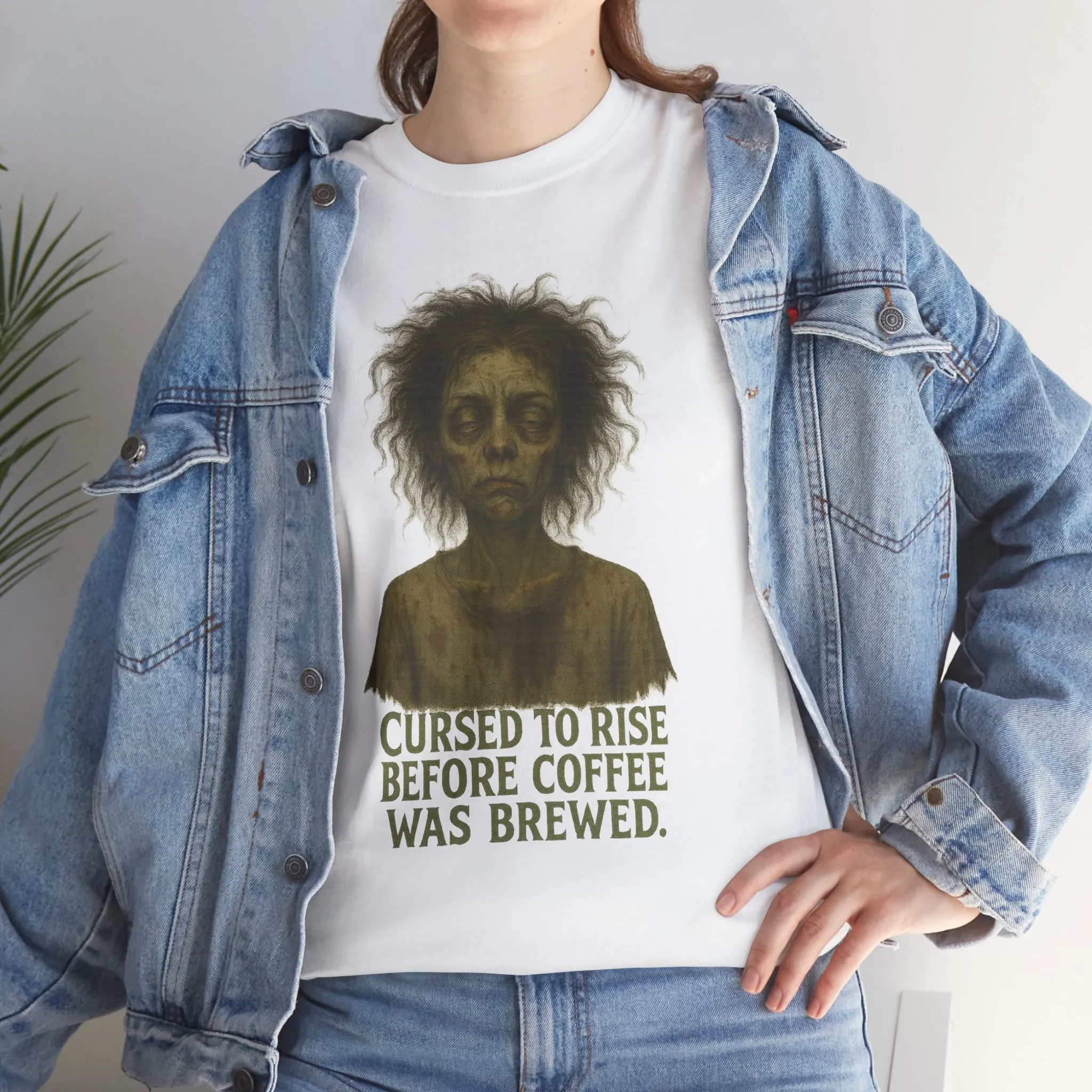 Cursed to Rise Before Coffee Was Brewed – Morning Horror Graphic T-Shirt