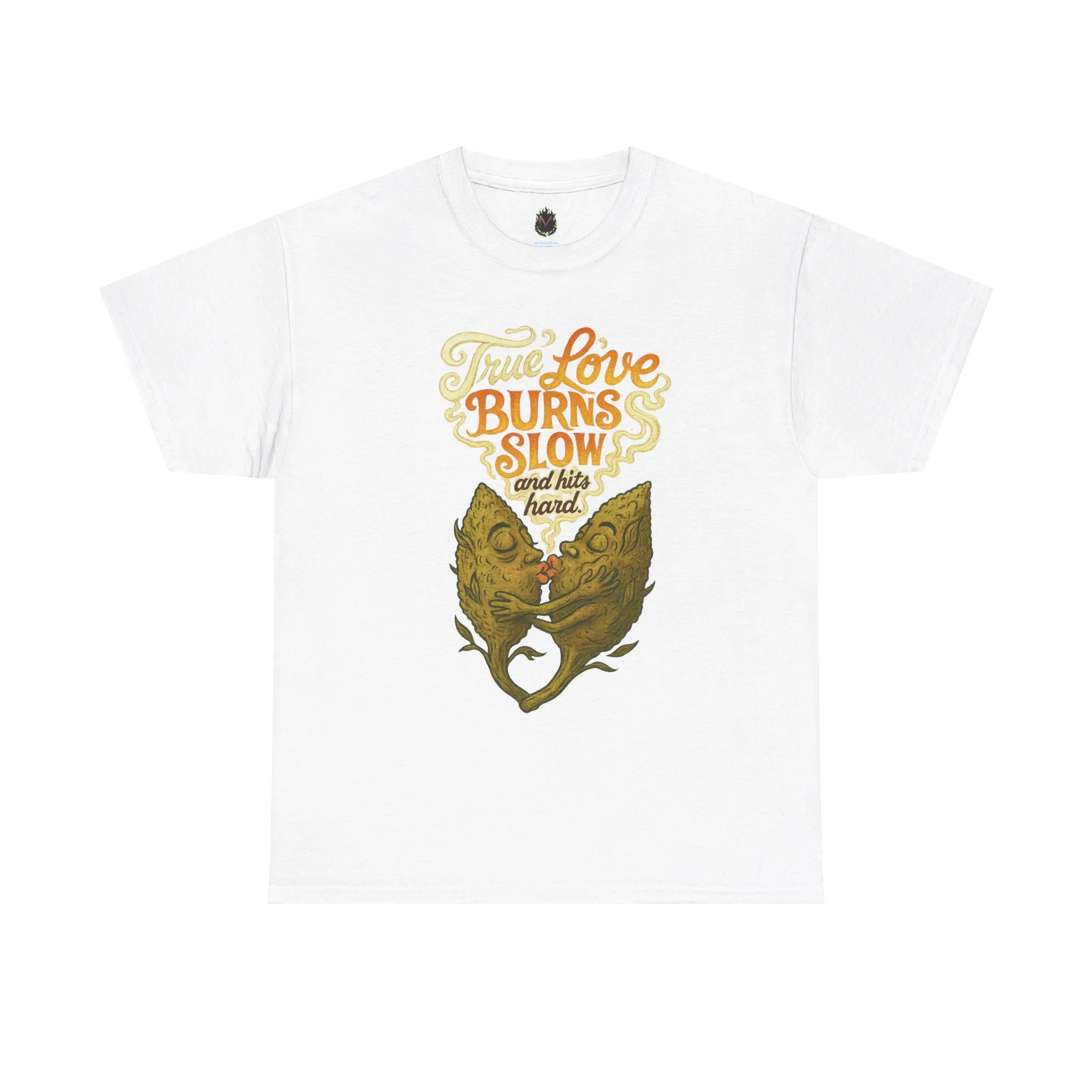 Featuring a swirling, poetic design, “True Love Burns Slow and Hits Hard” is a surreal love letter to passion, pain, and deep emotional truth.