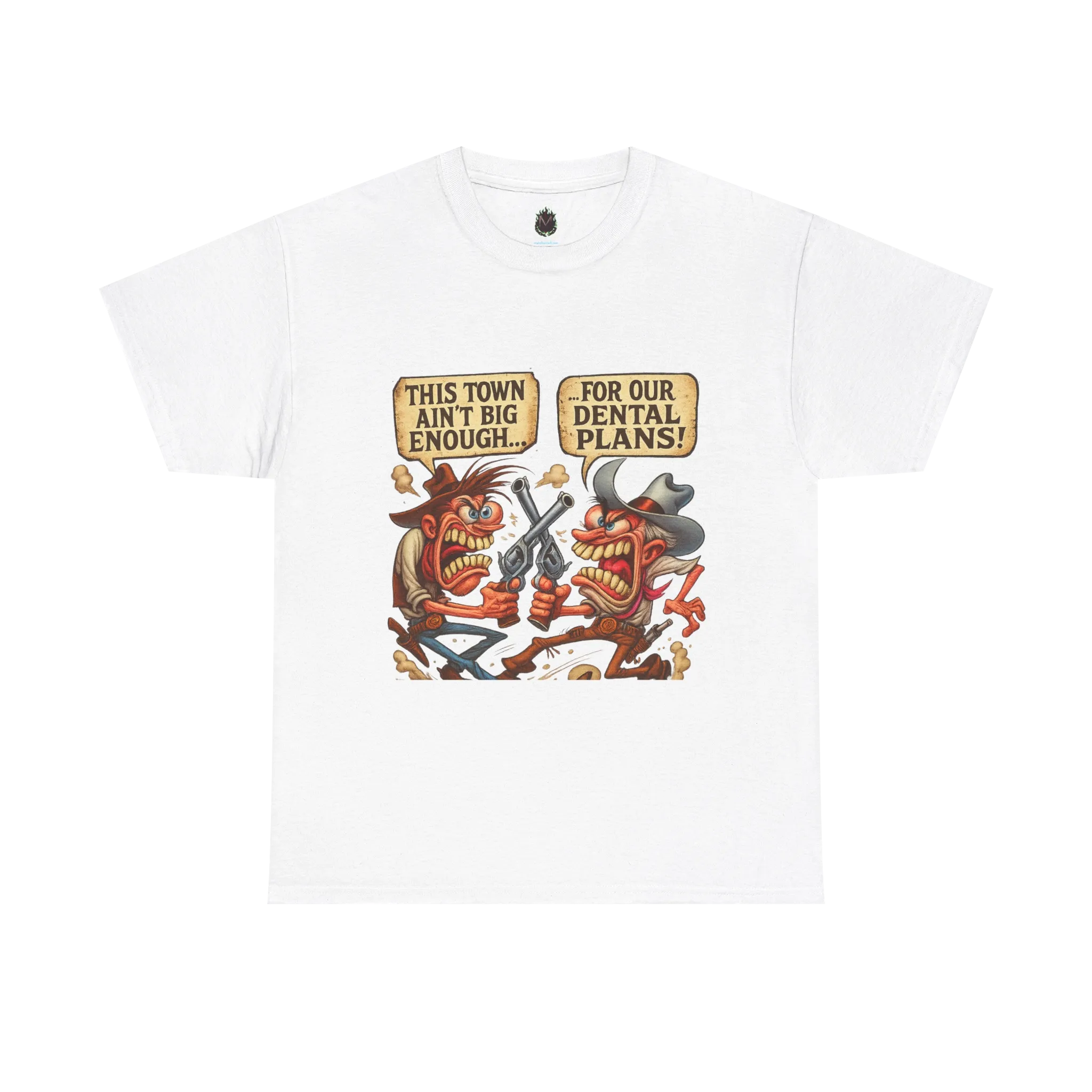 Two angry cowboys. One tiny town. Zero coverage. Our “This Town Ain’t Big Enough for Our Dental Plans” shirt is pure graphic nonsense in the best way possible.