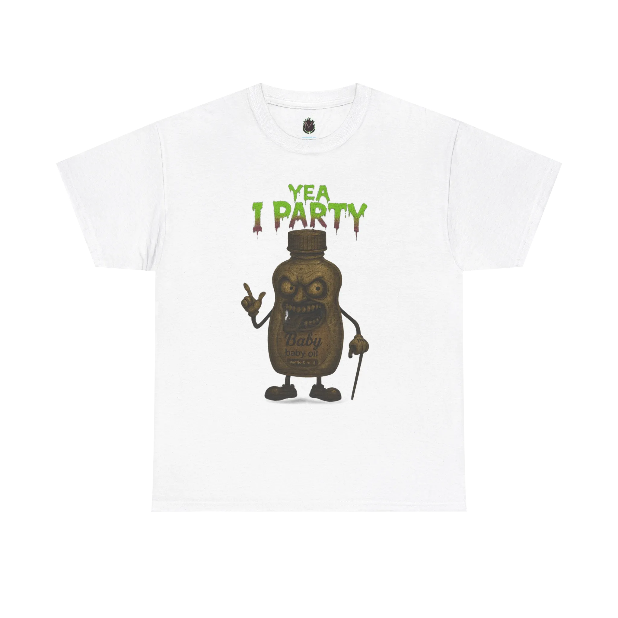 Our “Yea I Party” t-shirt blends horror, humor, and madness in one delightfully disturbing cartoon. From the neon slime font to the insane grin, this shirt is made to terrify, entertain, and confuse – all at once.