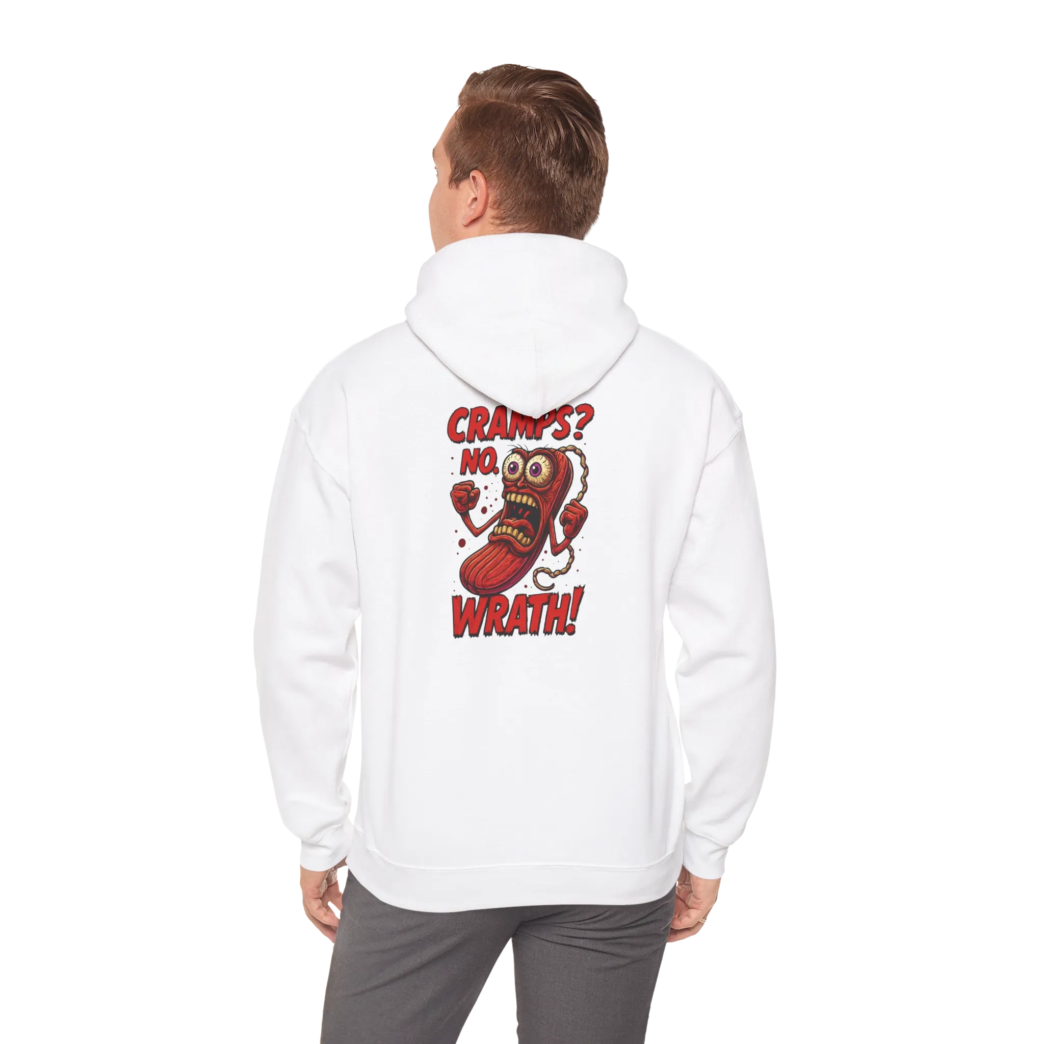 ?Cramps? No. WRATH!? This hoodie doesn?t tiptoe around the truth?it kicks the door in with fists raised. Starring a rabid, red-eyed pad of pure menstrual mayhem, this design turns pain into power and awkwardness into attitude. For anyone who?s ever had to smile through the storm, here?s your war cry.