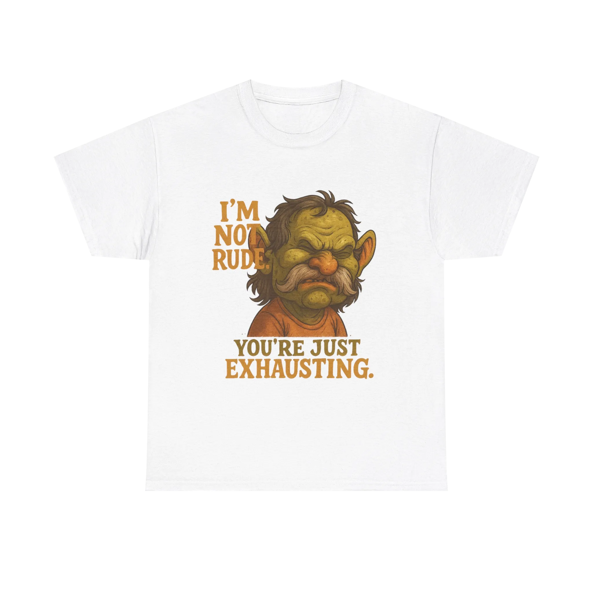 Featuring a permanently over-it character paired with the phrase “I’m Not Rude, You’re Just Exhausting,” this shirt is for anyone whose patience ran out sometime before lunch.